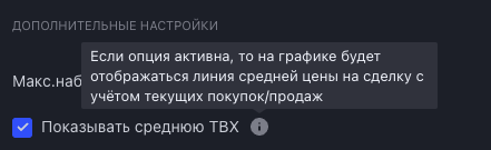 5) Добавлена возможность отображения средней точки входа по сделке с учетом всех покупок/продаж