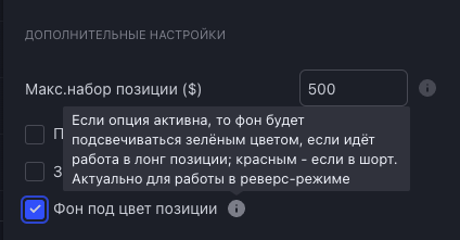 7) Добавлена возможность отображения цвета фона в зависимости от направления позиции (лонг - зелёный, шорт - красный)