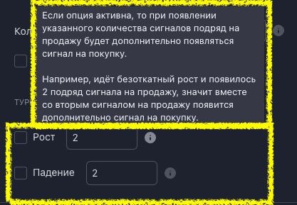 Добавлена возможность включать и фильтровать контр-сигналы на минимальный процент от появления предыдущего сигнала.