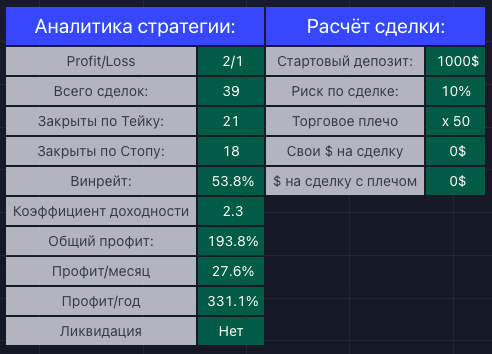 Так вот, я провёл аналитику и нашёл все эти производные стратегии. Теперь можно просто посмотреть на представленную таблицу, активировать нужную стратегию и производный к ней актив, тем самым диверсифицировав и размножив потенциал своей торговли.