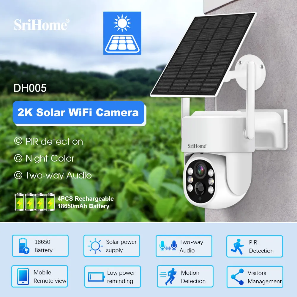 ixPnoLJBpXHere you can buy Srihome DH005 4MP 1440P Full Color Solar Power Low Comsunption IP Dome Camera AI Humanoid Detection Home Security CCTV Monitor with free delivery to your post office.