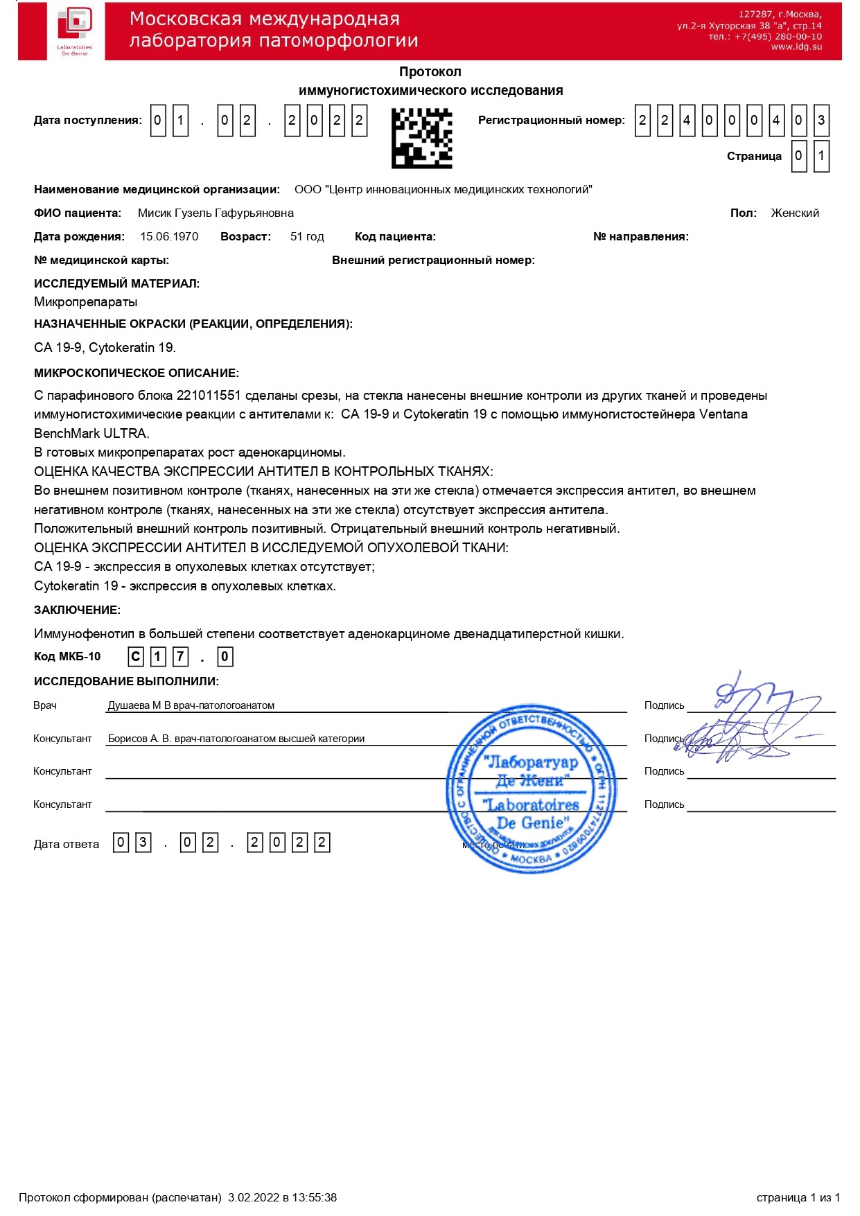 Общая сумма, состояние мамы и проведённое лечение.