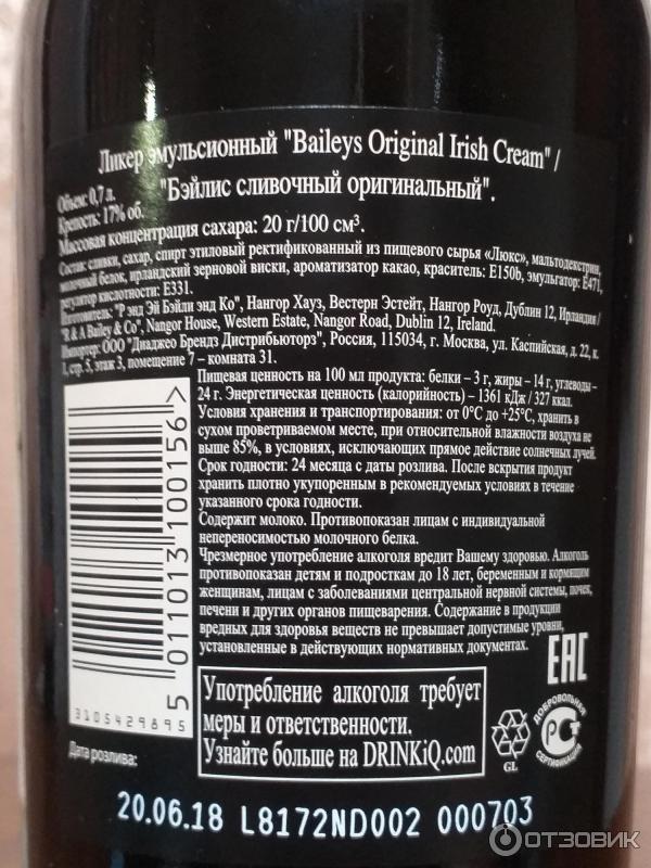 Срок годности бейлиса 144 фото