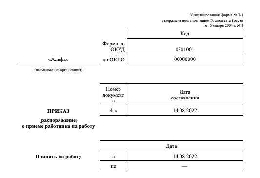 Срок издания приказа о приеме