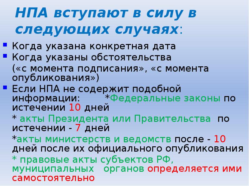 Сроки вступления нпа в силу