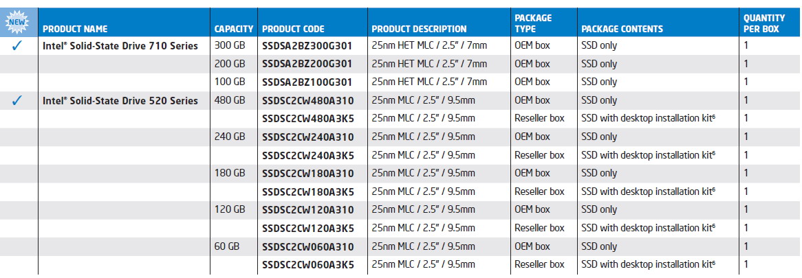 Intel ® SSD 520 Series (120GB, 2 .5in SATA 6Gb/s, 25nm, MLC) quick reference with specifications, features, and technologies .
