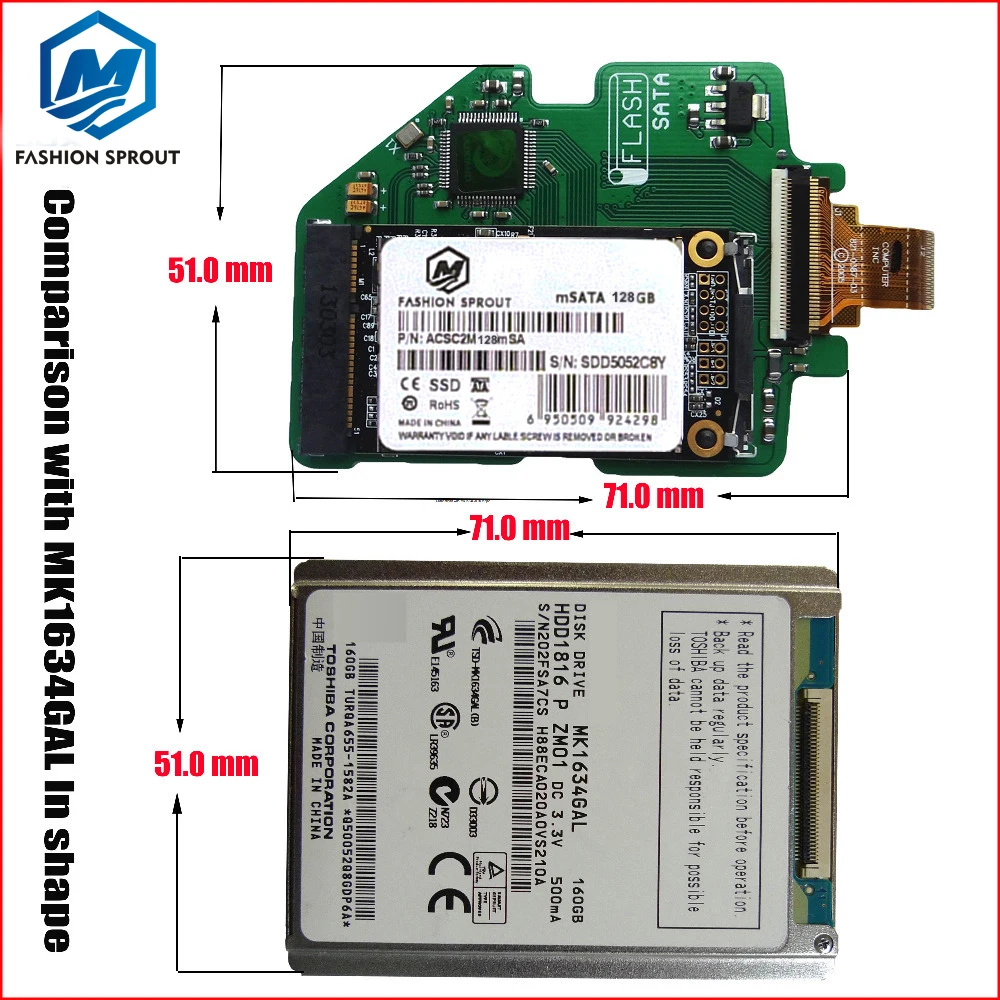 128 GB da 1,8 pollici SSD Solid State Disk, interfaccia 40-pin ZIF . Adatto per Macbook Air, Fujitsu U1010 e altri netbook . Velocità fino a 93 MB/sec di lettura e scrittura velocità fino a 54 MB/sec . Con controller di SMI .