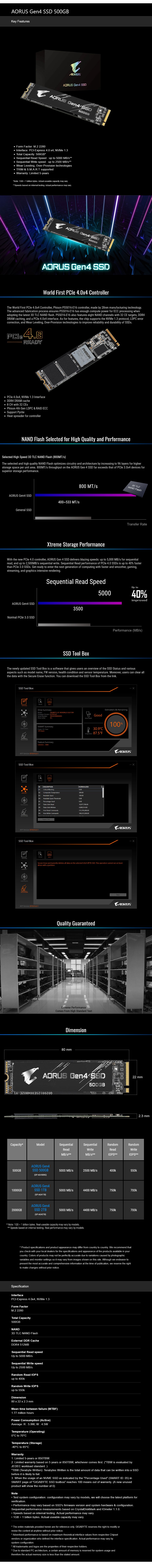 AORUS Gen4 SSD 500GB Key Features - GIGABYTE
