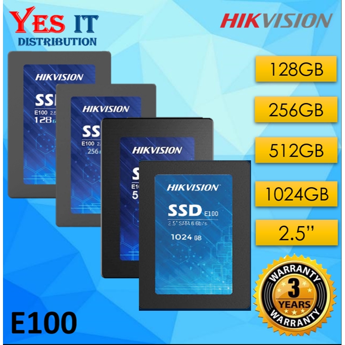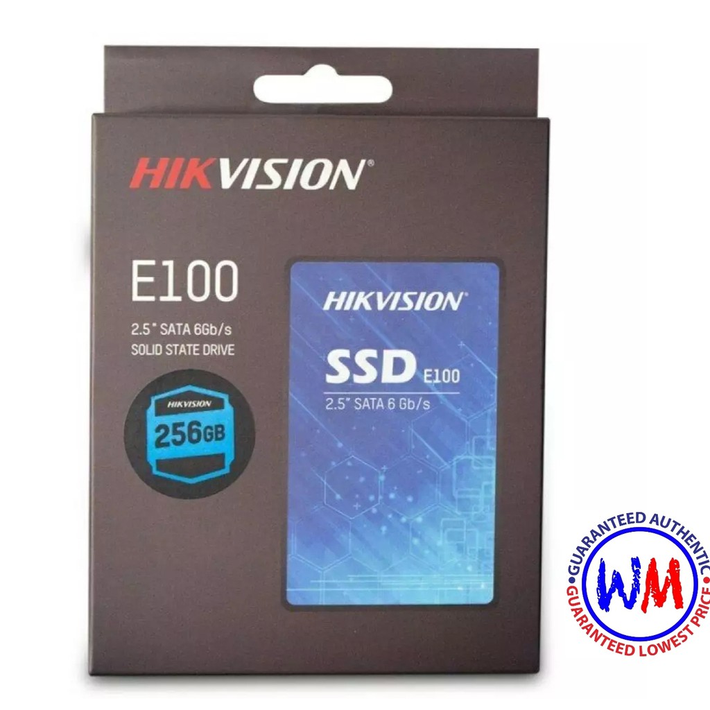 Hikvision SSD 256GB E100 . HikVision E100 3D NAND offers the potential for Higher Capacity, Performance, and Stability . Total Capacity: 256 GB . Max . read speed (MB/s): 550 . Max . write speed (MB/s): 450 . SATA III 6 Gb/s Interface .