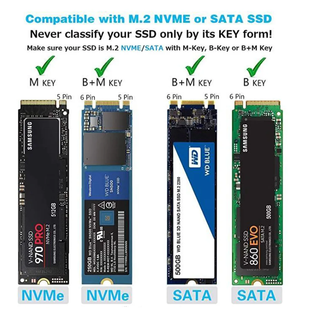 M .2 NVME SSD Enclosure Adapter Tool-Free, USB C 3 .1 Gen 2 10Gbps to NVME PCIe M-Key (B+M Key) Solid State Drive External Enclosure Support UASP Trim for SSD Size 2242/2260/2280 . 4 .5 out of 5 stars . 2,730 . $19 .99 .