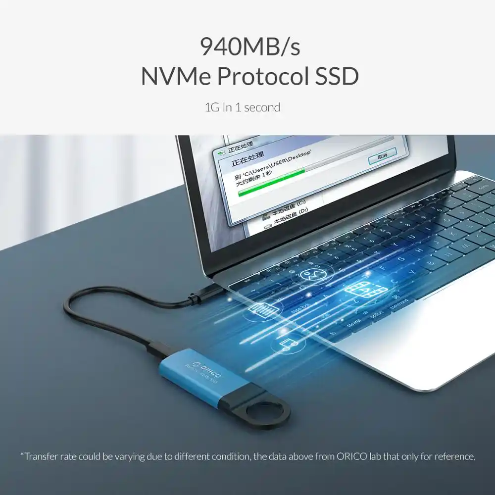 The ORICO Portable NVMe SSD GV100 is a M .2 NVMe External SSD Drive with ultra-fast data transfer speeds of up to 940MB/s, Super-speed 10Gbps throughput, maki . . .