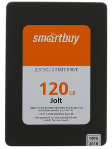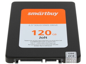 120 ГБ SSD -накопитель Smartbuy Jolt [SB120GB-JLT-25SAT3] снабжен интерфейсом подключения SATA III, контроллером SM2258XT и чипами памяти типа 3D TLC NAND .