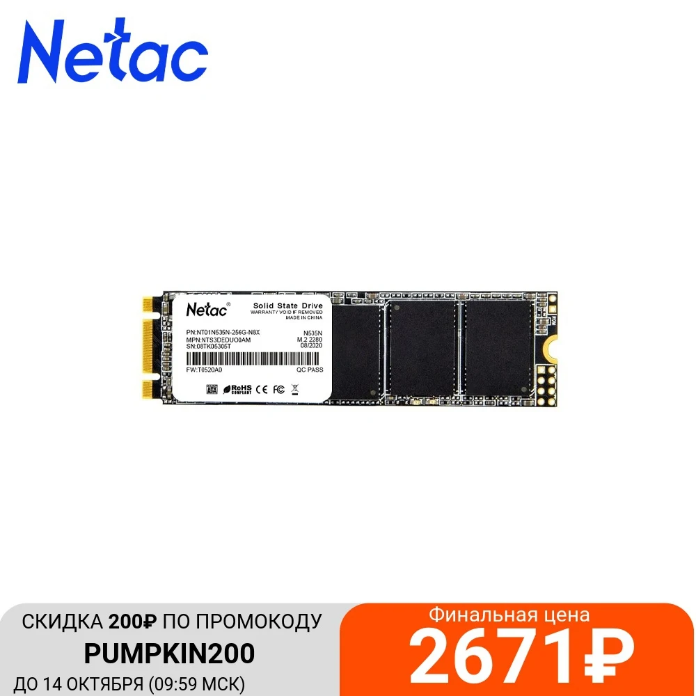 SSD M .2 2280 Netac N535N 256GB SATA3 540/490 MB/s The Netac N535N M .2 2280 SSD adopts an advanced controller and 3D NAND Flash technology, with delive . . 1,990ден .