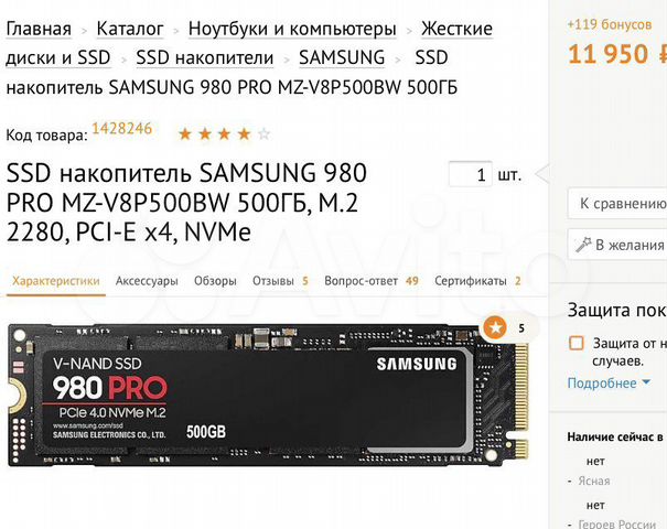 Купить с гарантией качества 500 ГБ SSD M .2 накопитель Samsung 980 PRO [MZ-V8P500BW] в интернет магазине DNS . Выгодные цены на Samsung 980 PRO в сети магазинов DNS . Можно купить в кредит или рассрочку