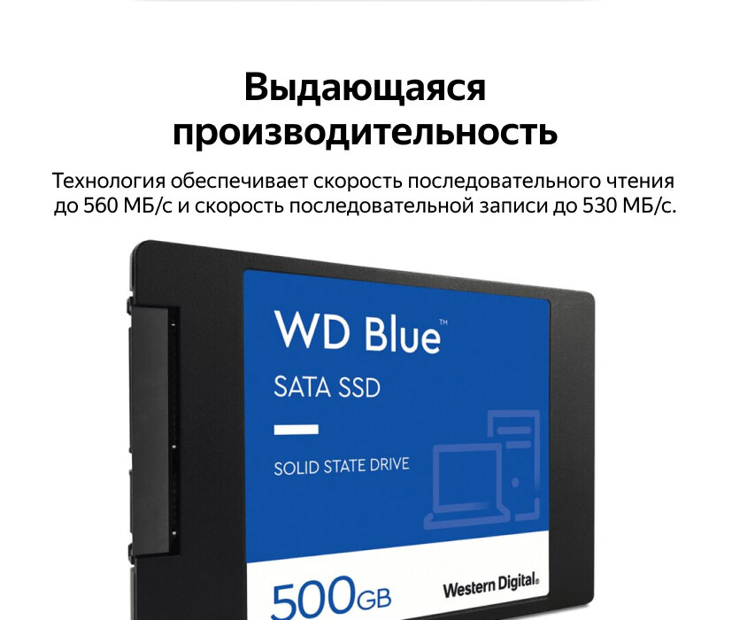 A WD Blue SATA SSD uses technology not only for higher capacities (up to 4TB in the 2 .5" 7mm form factor 1) than the previous generation WD Blue SSDs , but also to help reduce cell-to-cell interference for enhanced reliability . Outstanding Performance . technology enables Sequential Read Speeds up to 560MB/s and Sequential Write Speeds up to 530MB/s .