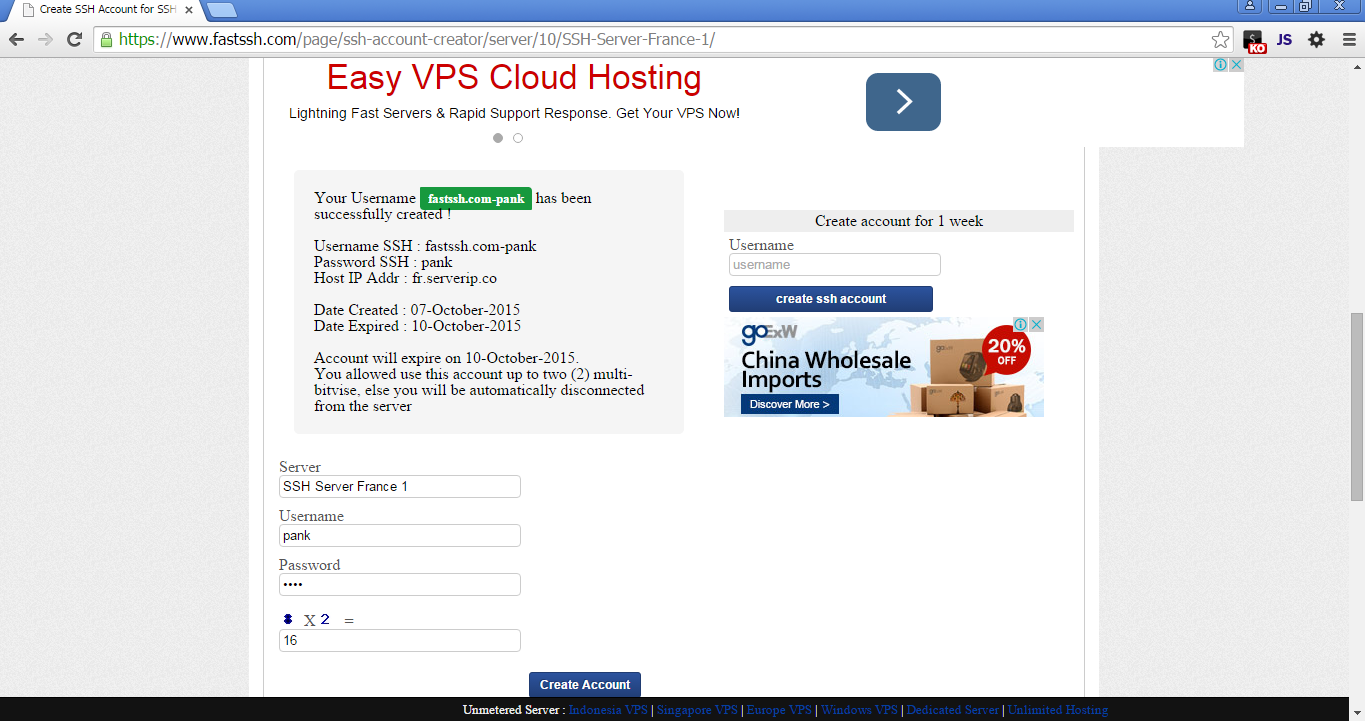Ssh account