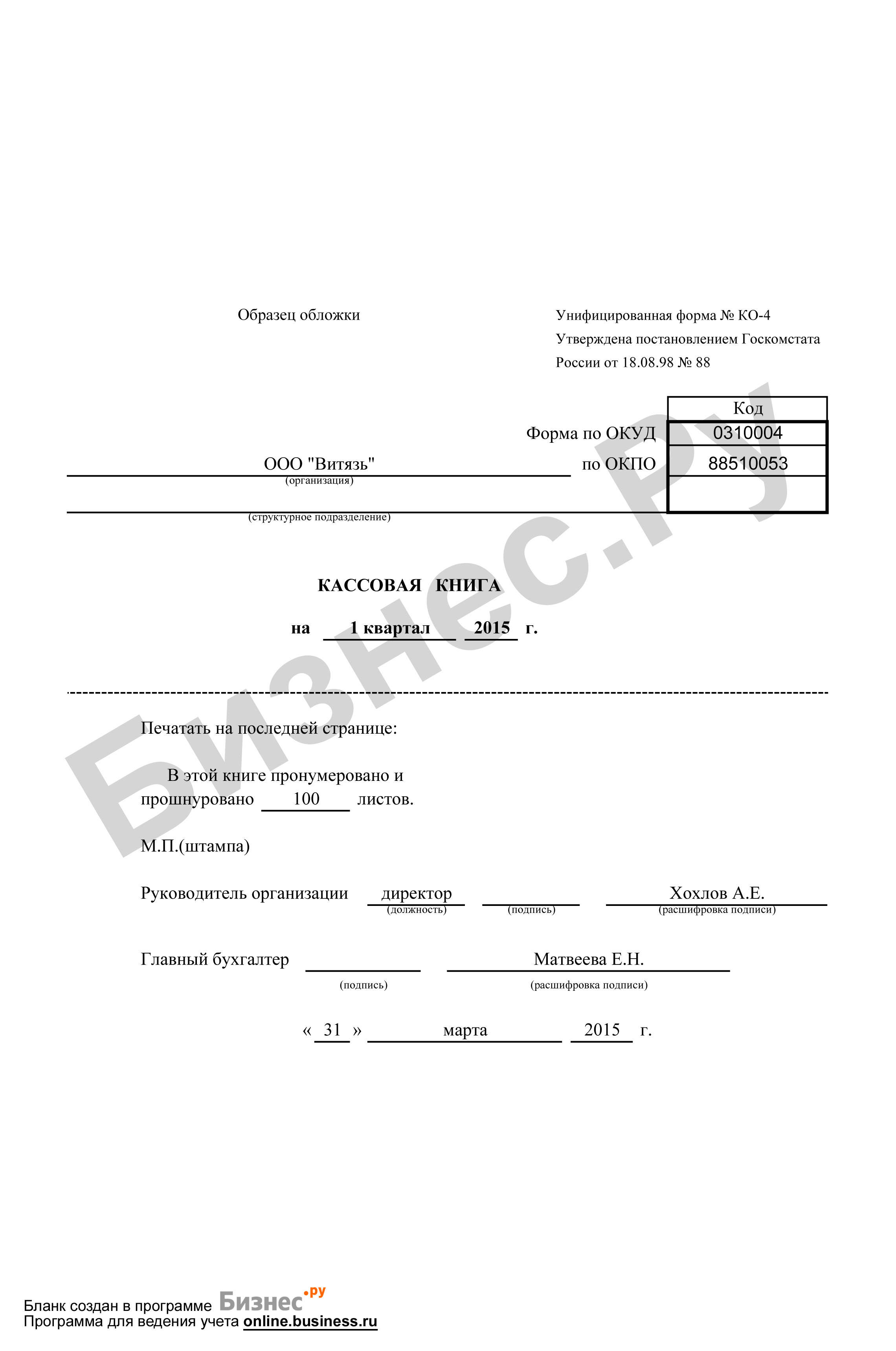 Сшить кассовую книгу образец
