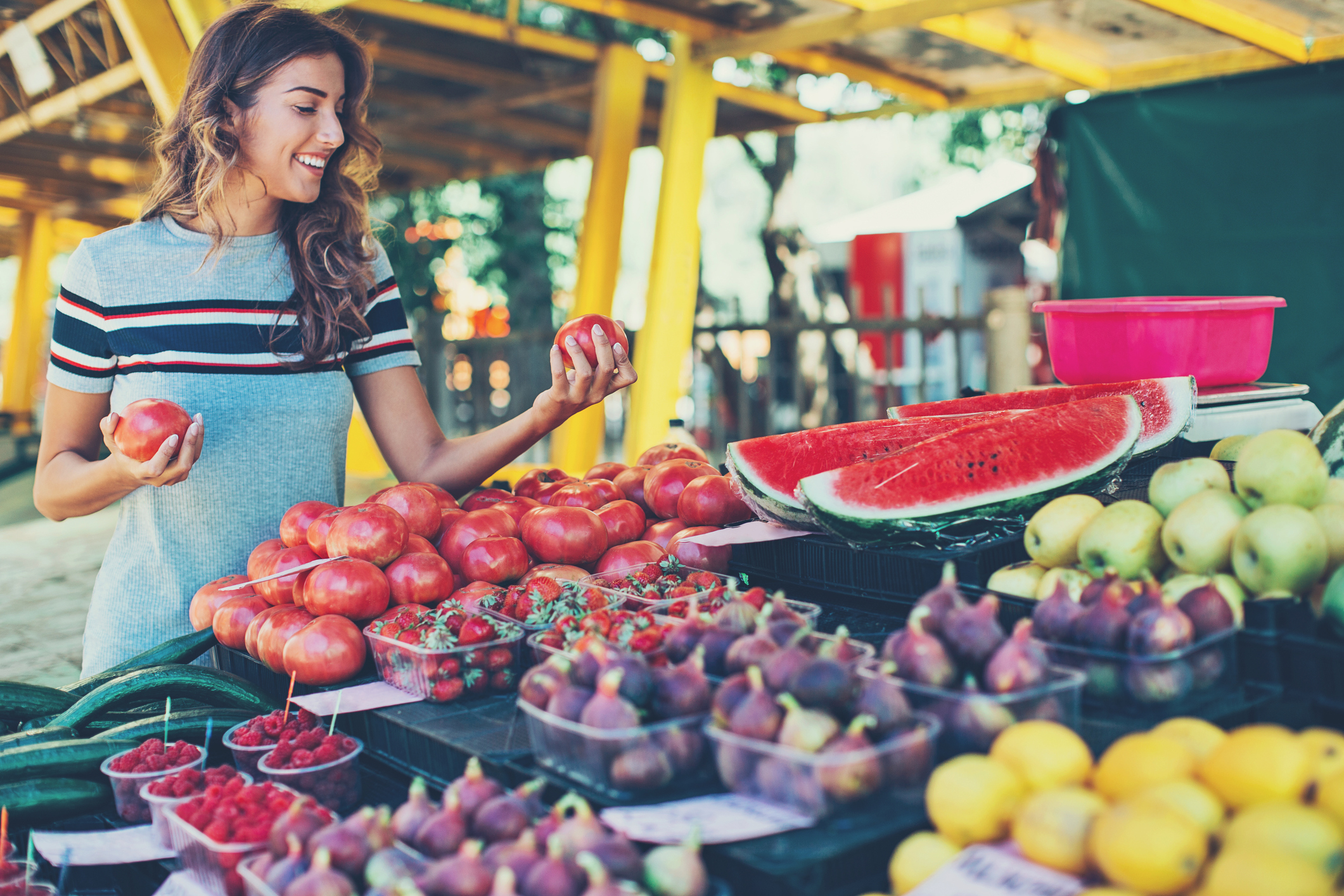 Stacey goes is going shopping for fruit