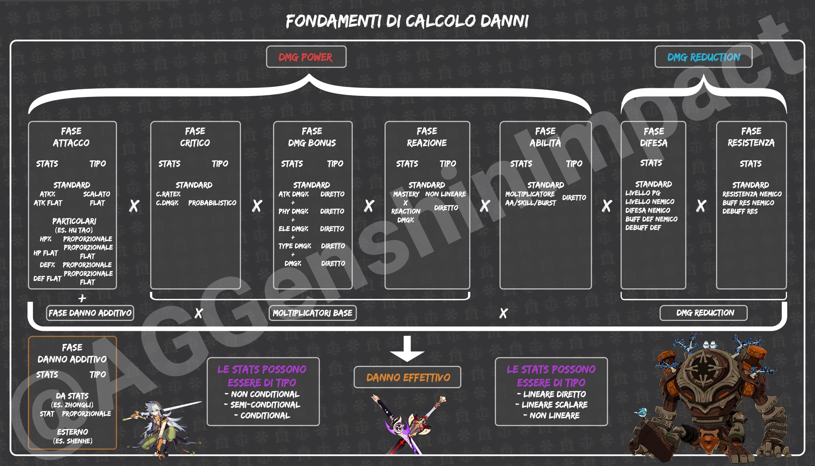 Per approfondire l'interazione tra le varie statistiche, e quindi valutarne la diminuzione di rendimento e l'inversione della stat, bisogna ripartire dal tipo di interazione che hanno le varie fasi del danno e dal tipo di statistiche in gioco.