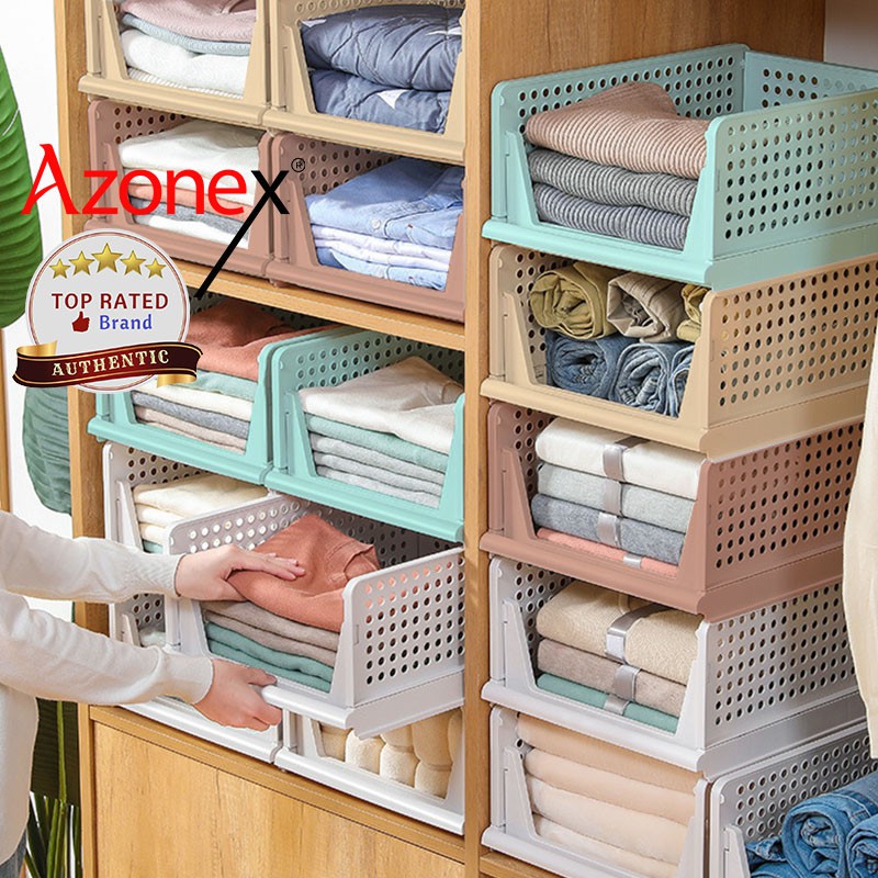 Stackable Sliding Clothing Storage Basket For Wardrobe . . .