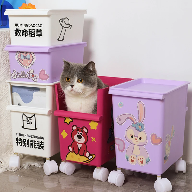 ToAoILDsHere you can buy Stackable and Increased Capacity Storage Box Double Layer Cat Snack Supply Station Toy Storage Box Cartoon Sticker Storage Cart with free delivery to your post office.