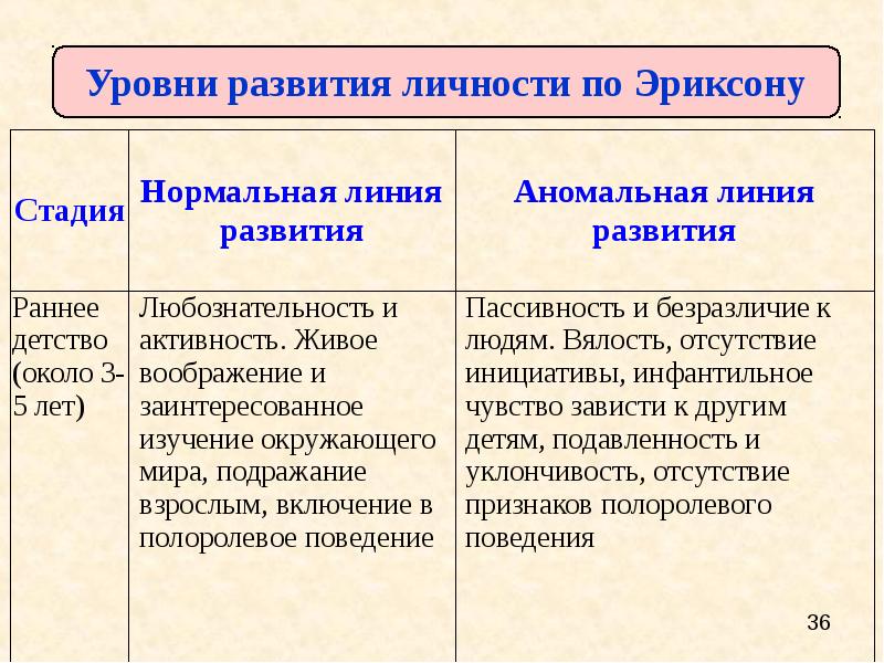 Стадии эриксона таблица