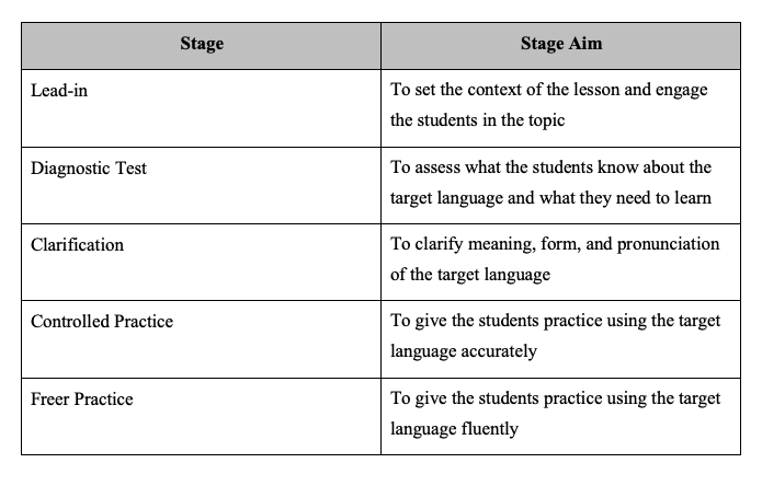 Stages of the lesson