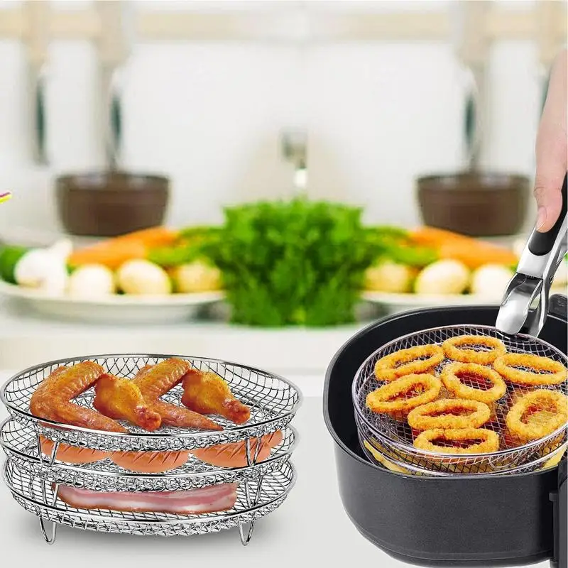 Stainless Steel Air Fryer Rack Round Air Fryer Steaming Basket Multi-Layer Roasting Air Fryer Grill Dehydrator Rack Accessories - Купить с бесплатной доставкой