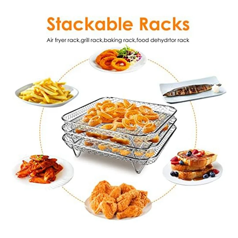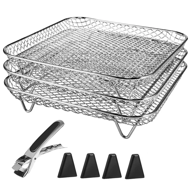 Stainless Steel Air Fryer Rack With Clip, Square Stackable Baking Basket Multi-Layer Dehydrator Rack Air Fryer Parts - Купить с бесплатной доставкой