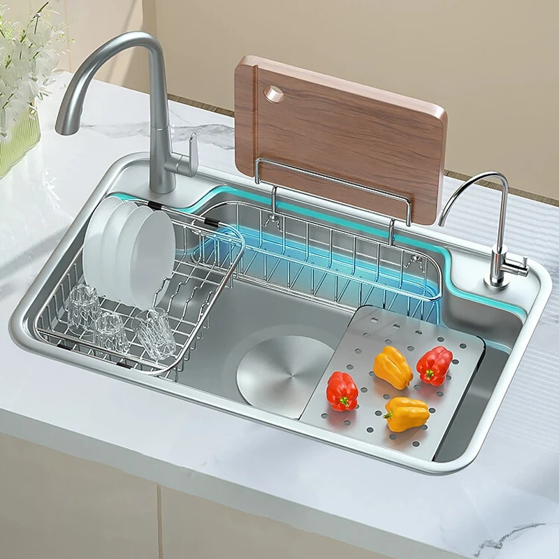 "Stainless Steel Kitchen Sink With Rack Shelf Large Single Slot Household Washing Basin Multifunctional Pool For Kitchen" * Buy Now With Free Shipping Just For $320