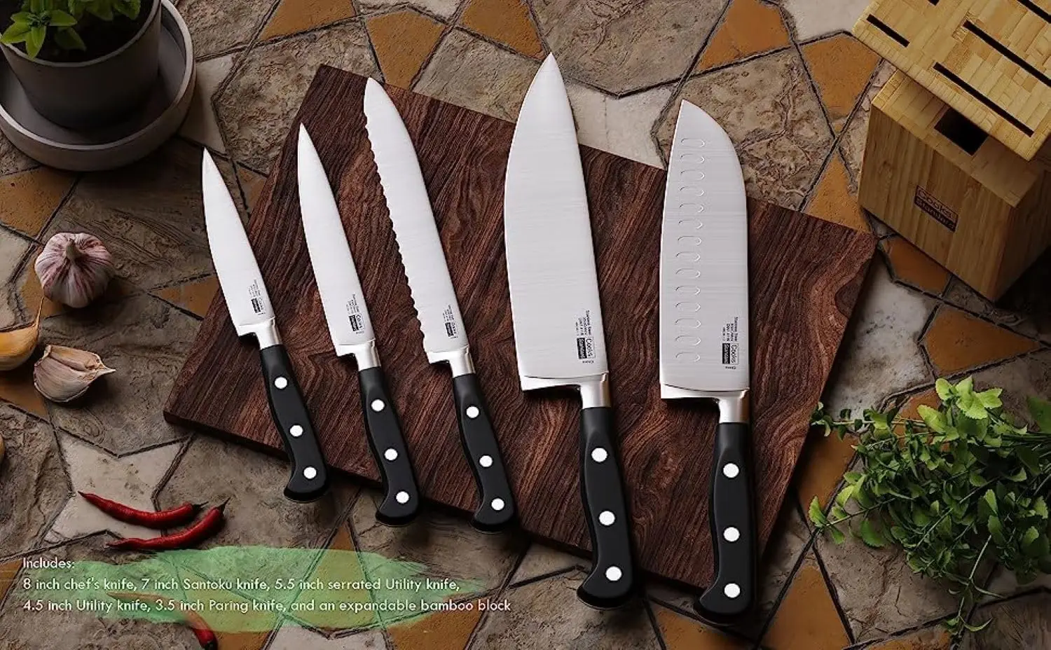 "Stainless Steel Knife Set with Expandable Bamboo Block for Extra Slots Spoons Mini spoon Spoon Tableware" * Buy Now With Free Shipping Just For $56