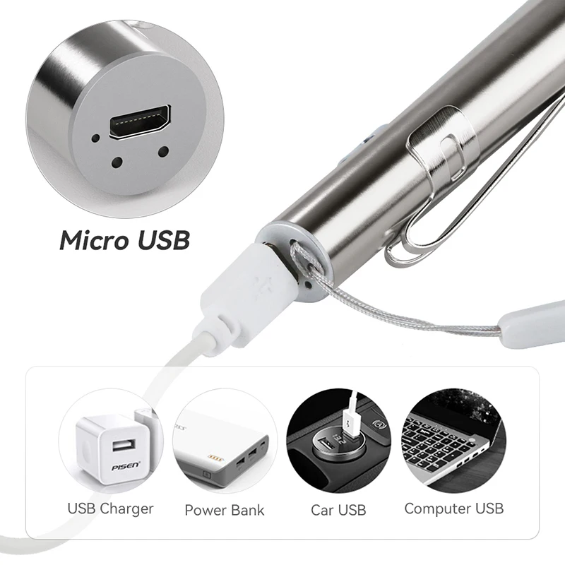 Stainless Steel Mini Pocket Lamp Led Flashlight Torch Light USB Rechargeable Pupil Detection Pen Led White Light Flashlight - Купить с бесплатной доставкой