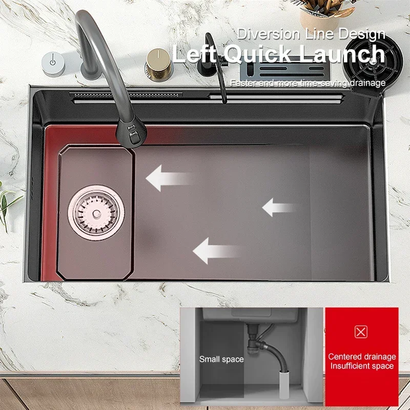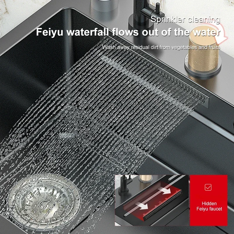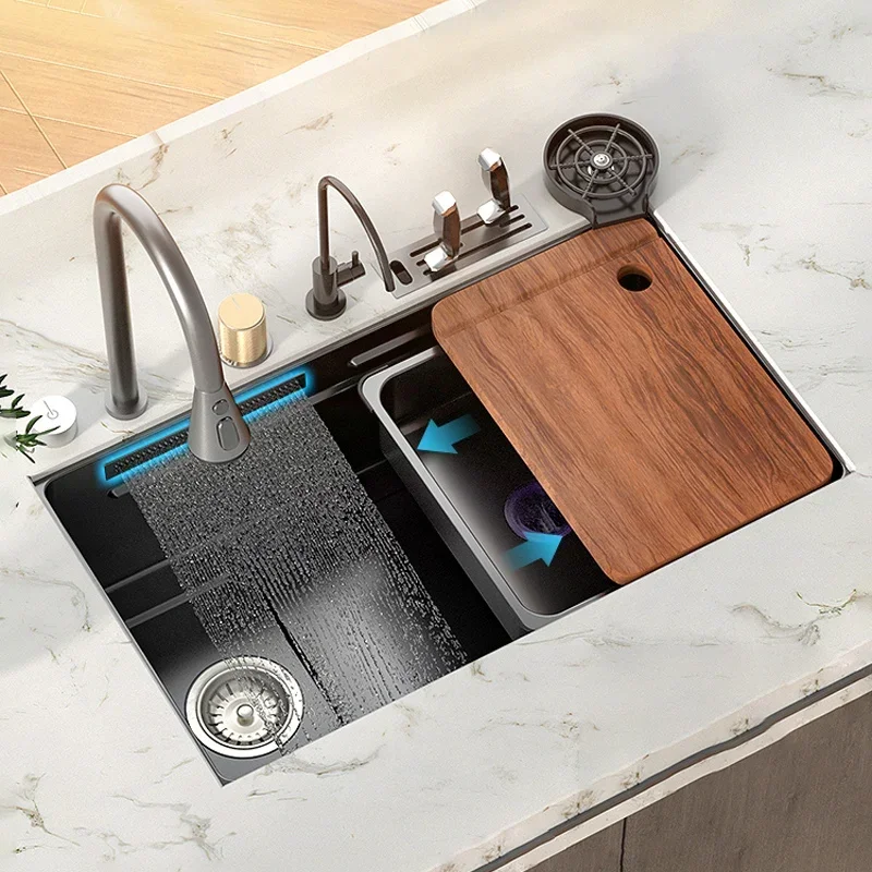 gbvodnnDZgHere you can buy Stainless Steel Waterfall Kitchen Sink Large Single Slot Multifunctional Washbasin Left Underwater Undercounter For Kitchen with free delivery to your post office.