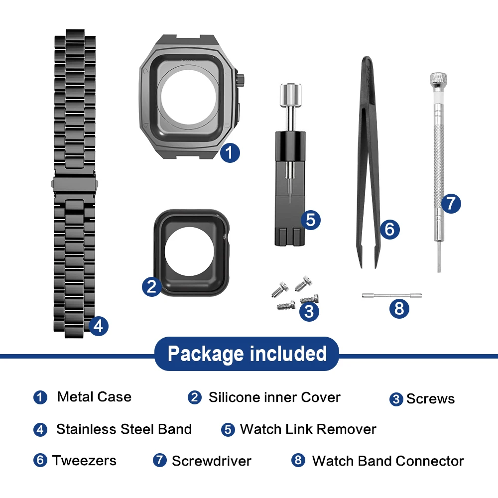 mcMBBaZQKДолго искали Stainless Steel strap+case for Apple Watch 45MM 44MM 40MM DIY Modification Metal Bezel For Apple Watch8 7 6 5 4 3 2 1 41mm Starp, но не могли найти? Предоставляем вашему вниманию Stainless Steel strap+case for Apple Watch 45MM 44MM 40MM DIY Modification Metal Bezel For Apple Watch8 7 6 5 4 3 2 1 41mm Starp по лучшей цене на рынке!
