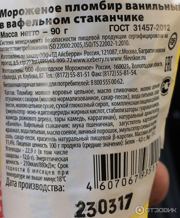 Стакан мороженого калории 119 фото