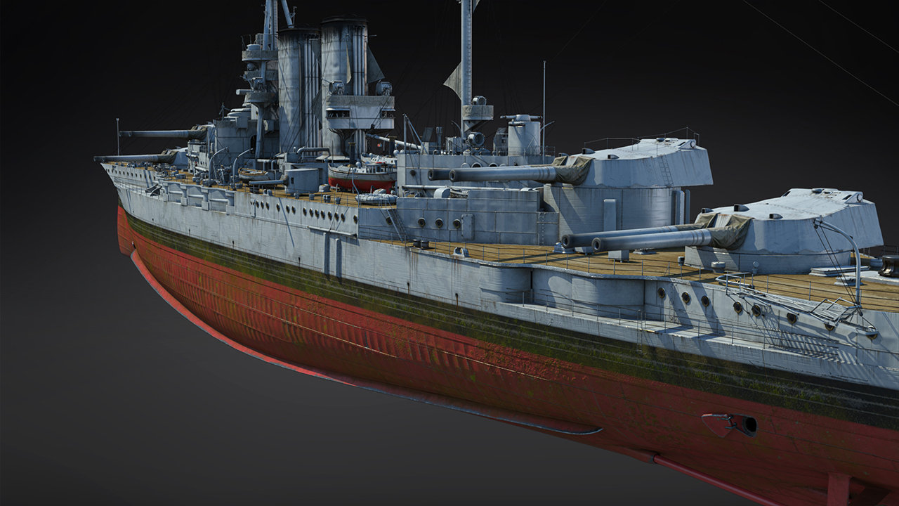 К недостаткам Barham можно отнести ожидаемо слабую батарею ПВО — всего две 76-мм пушки едва ли станут препятствием для умелого пилота, так что линкору жизненно необходимо зенитное прикрытие союзников. Ещё одна особенность корабля — очень низкая скорость горизонтального наведения башен ГК, неуклюжий Barham вряд ли сможет быстро отреагировать на резкое изменение тактической обстановки или первым атаковать показавшийся с неожиданного направления корабль. Держите дистанцию, чтобы видеть максимально широкий участок моря, ну и заранее продумайте свой маршрут, конечно. Наконец, если пришлось ввязаться в ближний бой, помочь смогут четыре подводных ТА калибра 533 мм.