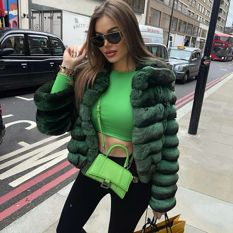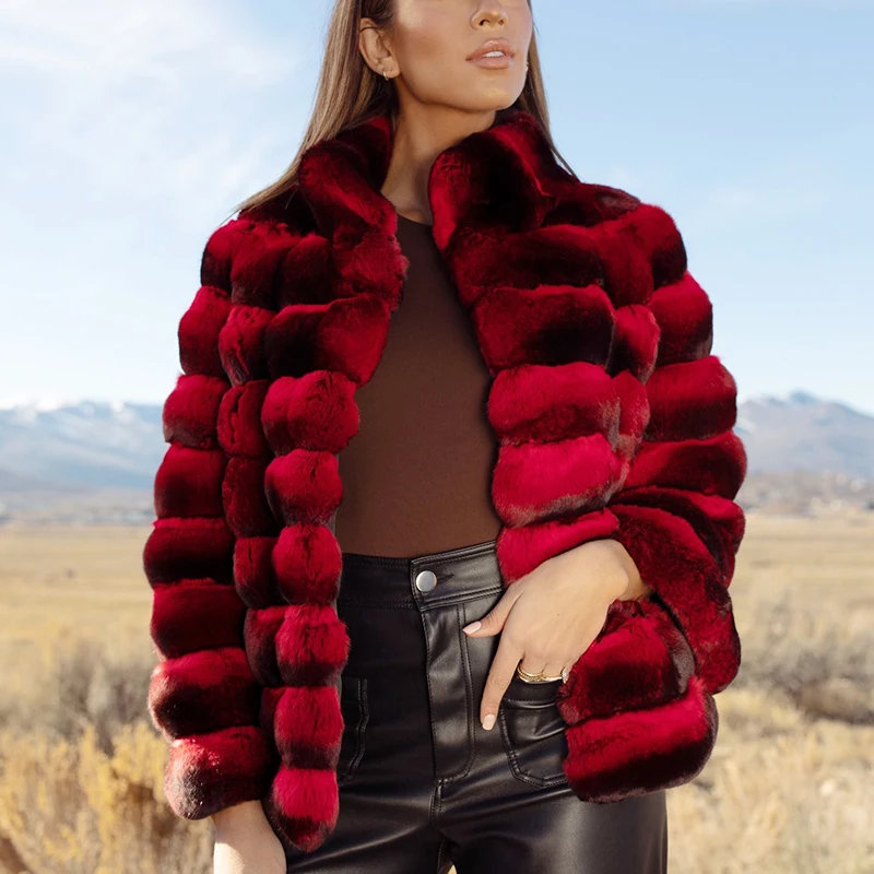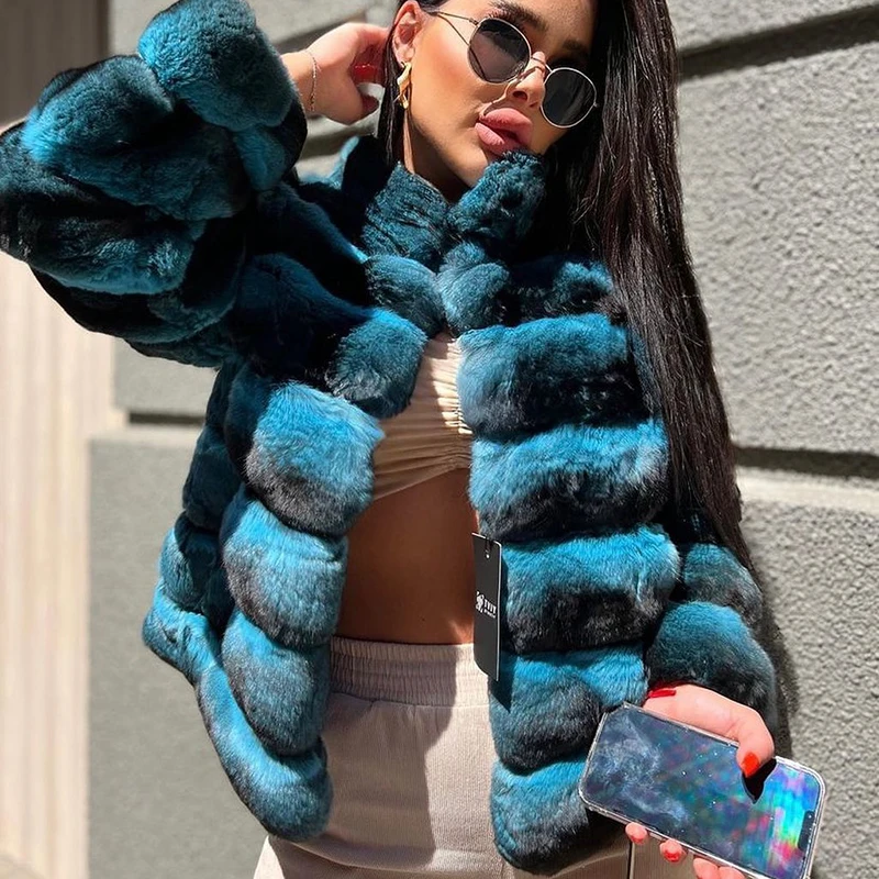 "Stand-up Neck Natural Genuine Rex Rabbit Fur Jacket Women High Street Winter Lady Contrast Color Real Rex Rabbit Coats Femael" * Buy Now With Free Shipping Just For $398