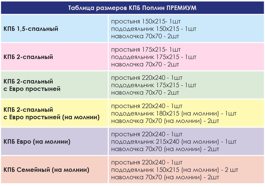 Стандартные комплекты постельного белья размеры