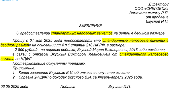 Стандартные вычеты в двойном размере