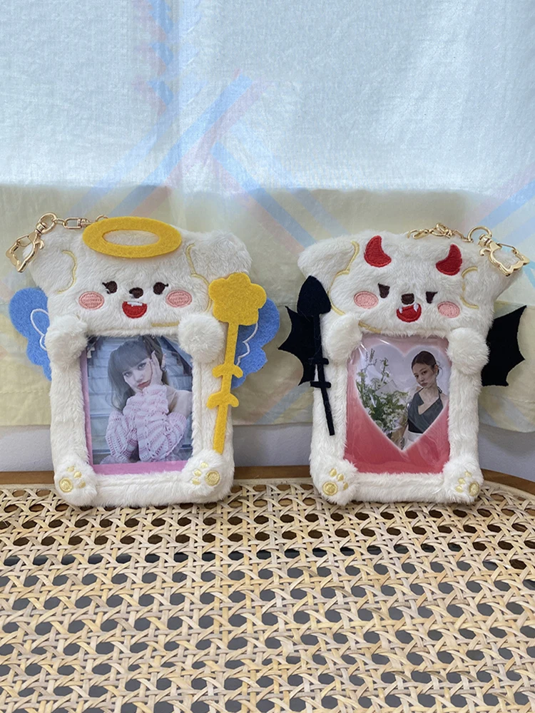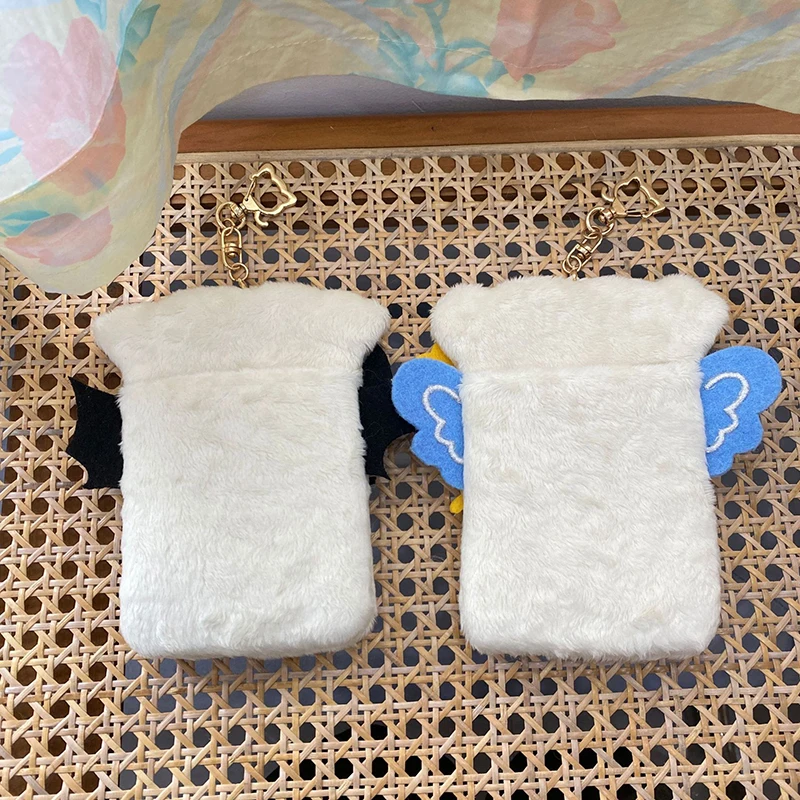 Star Chasing Pendant Plush Card Cover 3 Inch Sweet Angel Devil Shape Cartoon Cute Protector Case INS Keychain ID Credit Case - Купить с бесплатной доставкой