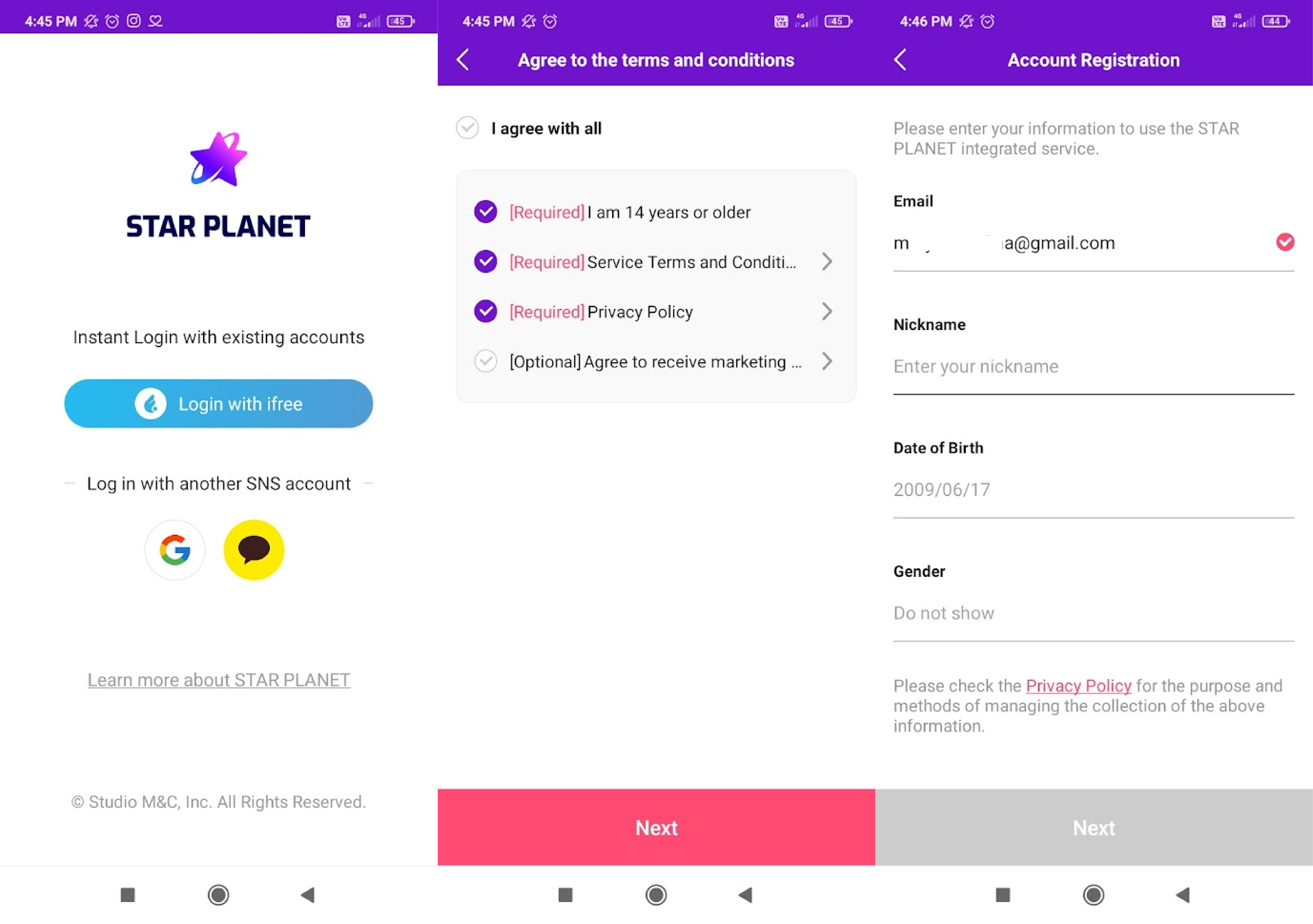 Зарегистрироваться можно несколькими способами, выберите любой подходящий для вас. Далее согласитесь с обязательными требованиями (последняя галочка предлагает получать рассылку). Затем заполните личные данные: почта (будет уже указана), никнейм, дату рождения (если вам меньше 14 лет, зарегистрироваться не получится), пол.