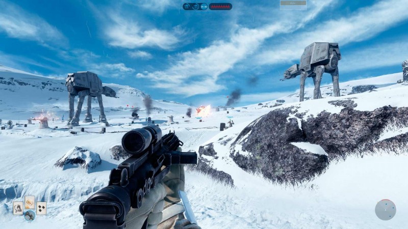 Обзор Star Wars : Battlefront ( PS4 ) Здесь раздается зловещий грохот AT-AT, шагающего по мерзлой тундре планеты Хот . Вслед за имперскими спидерами, несущимся по дебрям Эндора, сверкают выстрелы бластеров повстанцев .