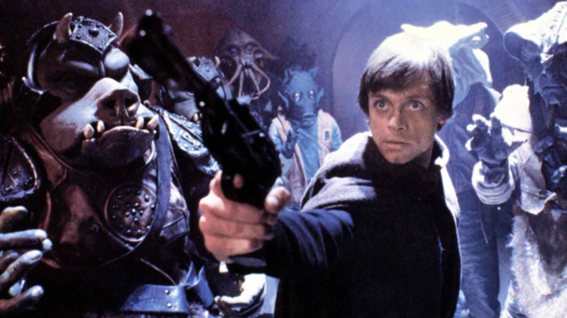 Blue and red-skinned characters of Star Wars arranged orgy