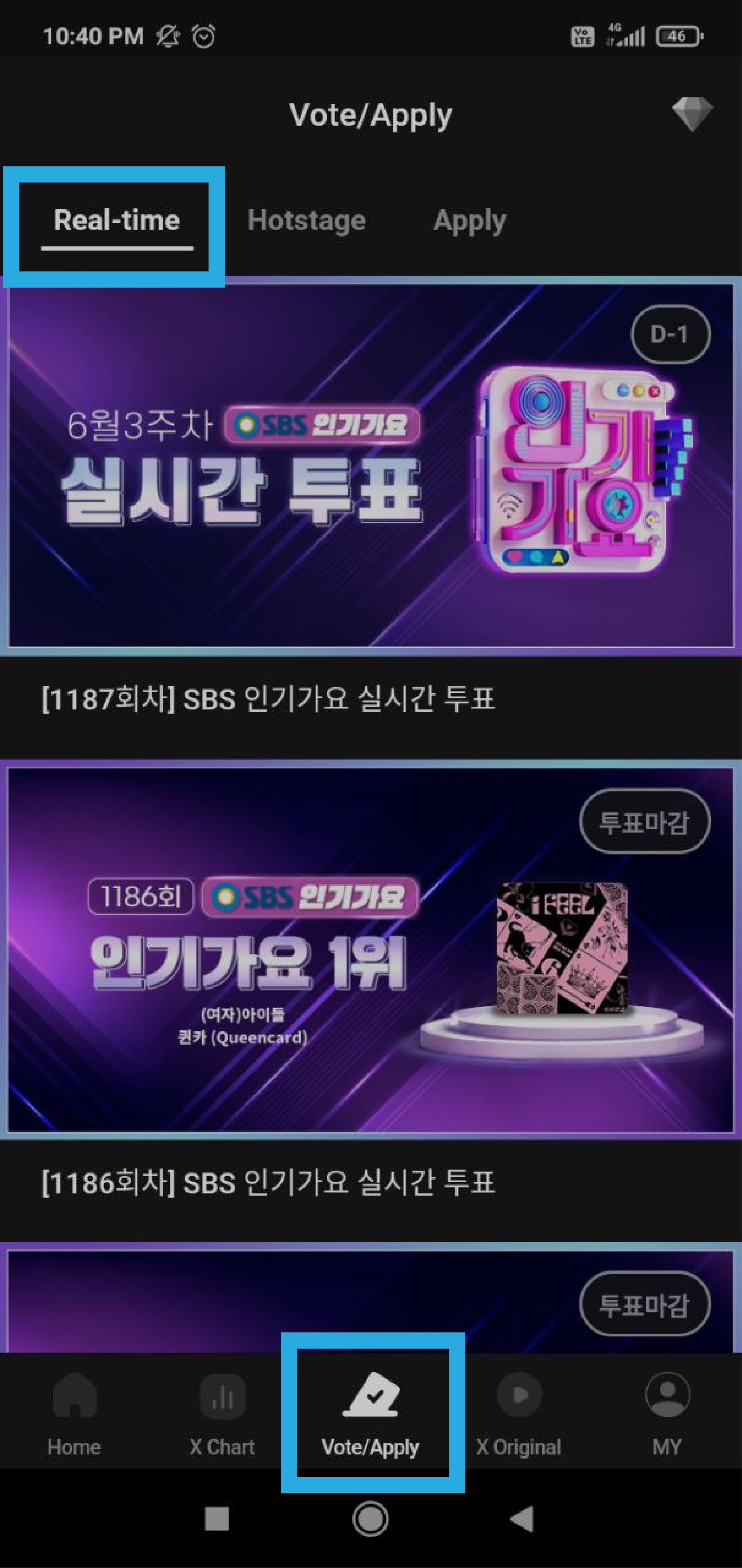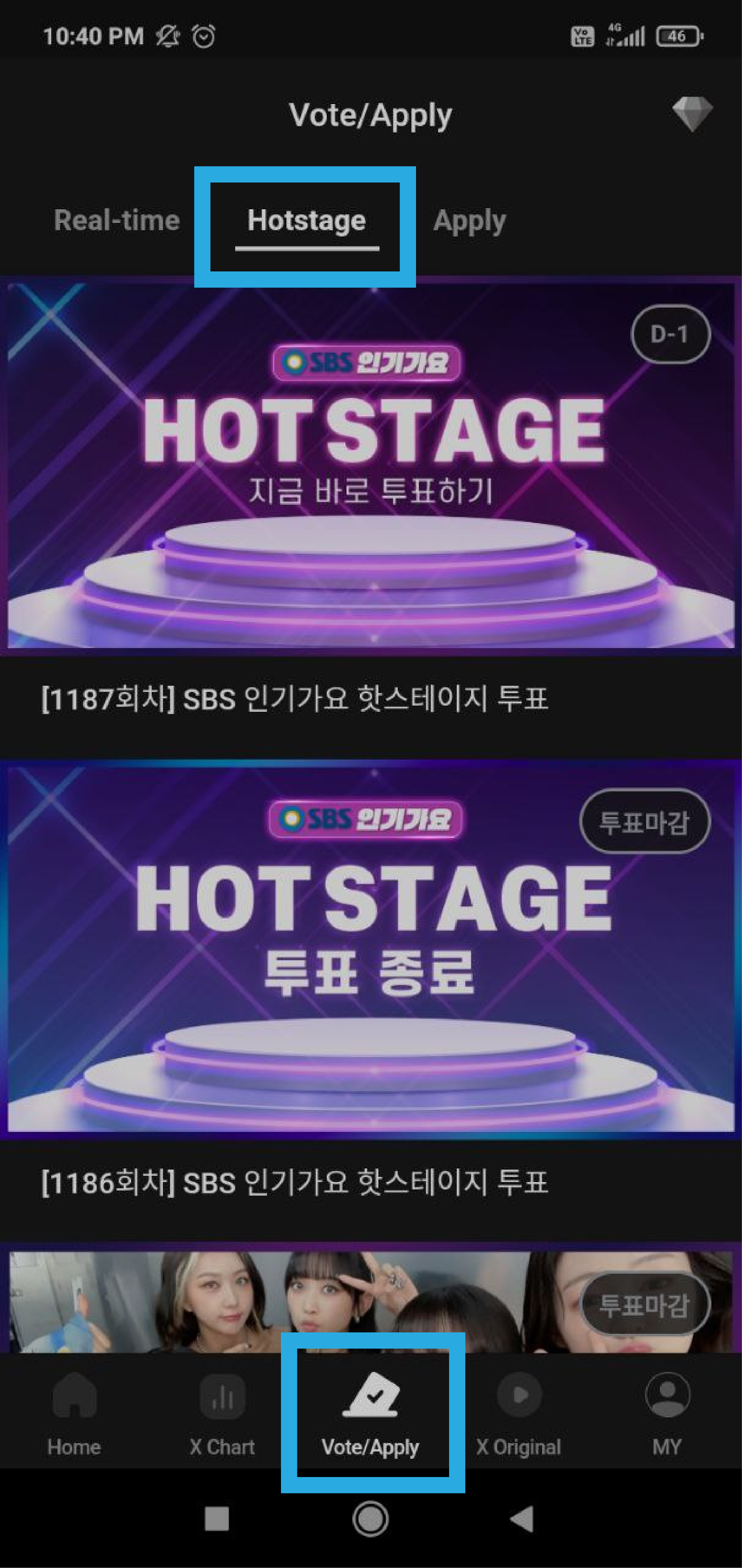 Перейдите на вкладку "Voting", а затем на вкладку "Hotstage". Голосование проходит каждую неделю с воскресенья до среды.