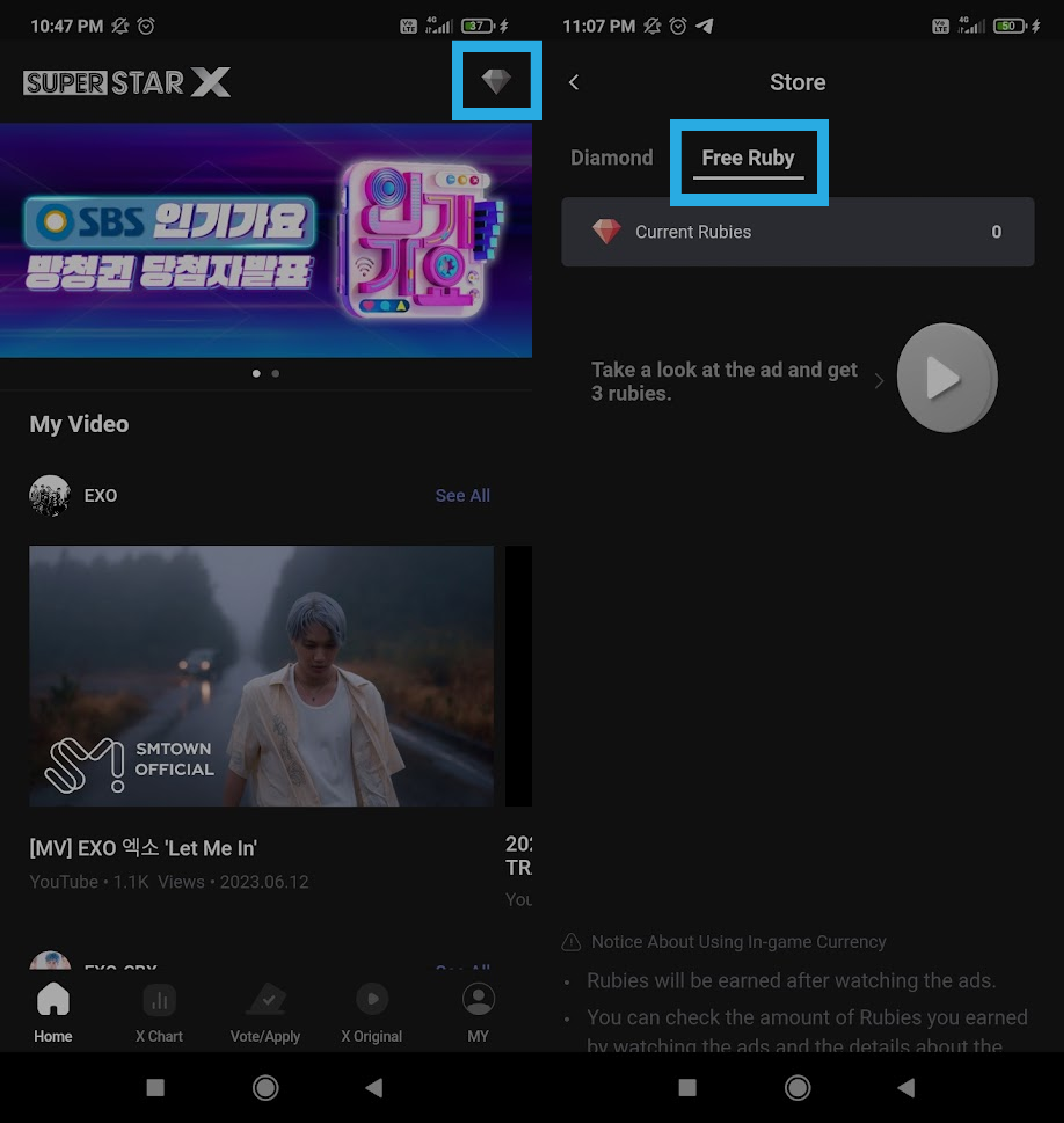 БогиХО 2.0SuperStar X - одно из приложений, необходимых для голосования во время промоушена. В нём проходит голосование для шоу Inkigayo.