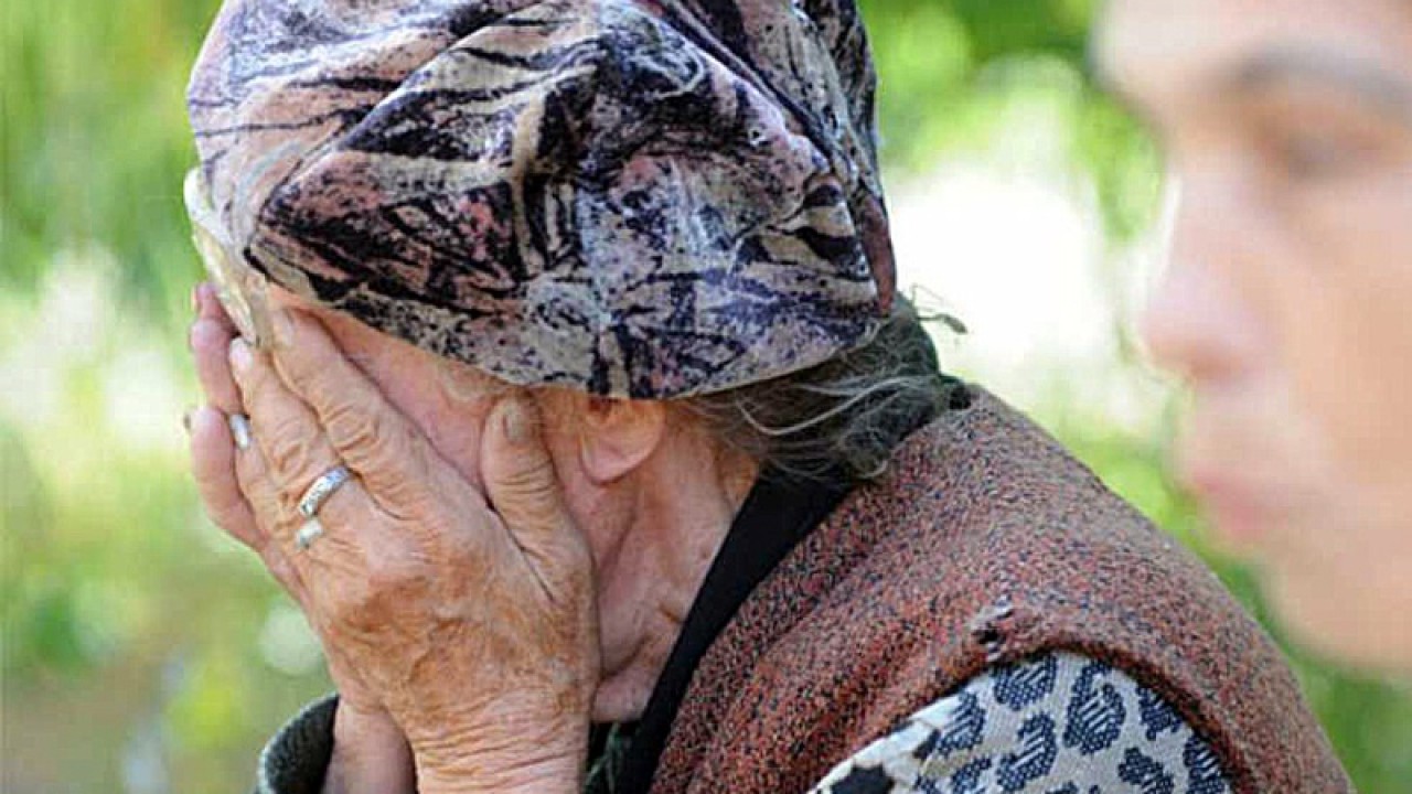 Старая женщина плачет