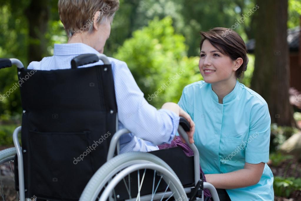 Скачай это Премиум Фото на тему Старик с медсестрой на улице и открой …