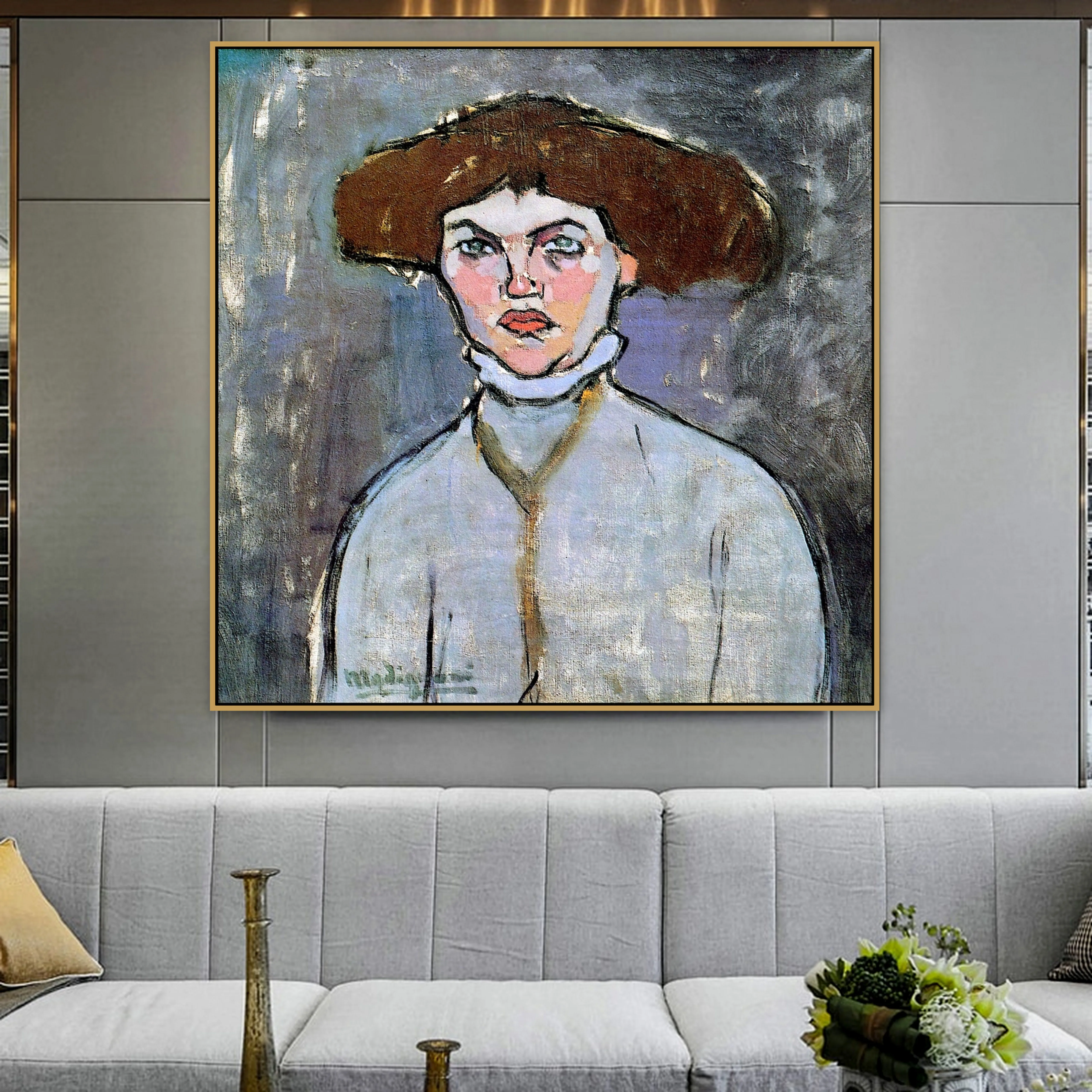 Один мужчина - старик с седой бородой . Он шикарно одет, у него на шее - массивная золотая цепь, а в руке - шкатулка с золотом и бриллиантами . Вторая рука много раз обернута жемчужной нитью .