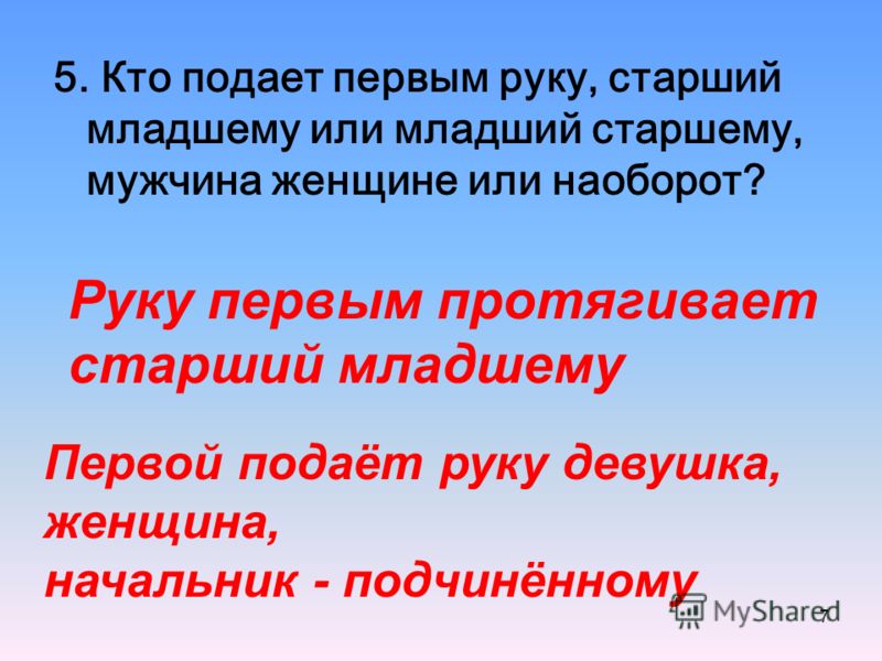 Старший должен первый протягивать руку