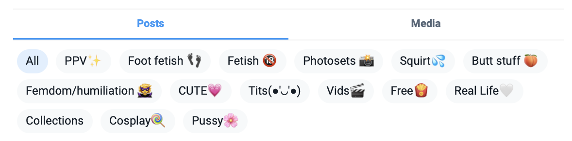 Конечно! После того, как на странице появится некоторое количество контента и ты поймёшь что и как ты постишь, нужно сделать рубрикацию контента для удобства пользователей! А ещё эту рубрикацию можно использовать для организации подписок. Например, в одной из подписок ты решила продавать только фут-фетиш контент. Ты делаешь рубрику “футфетиш” и сомневающийся подписчик может зайти туда, посмотреть как много там контента и как часто он обновляется и купить подписку именно из-за больших объёмов!